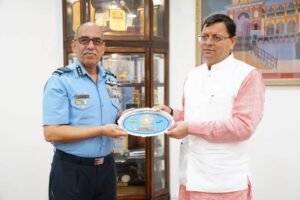देहरादून। मुख्यमंत्री पुष्कर सिंह धामी से शुक्रवार को मुख्यमंत्री आवास में एयर मार्शल, रवि गोपाल कृष्णा कपूर, एयर ऑफिसर कमांडिंग -इन -चीफ, मध्य वायु कमान ने शिष्टाचार भेंट की।