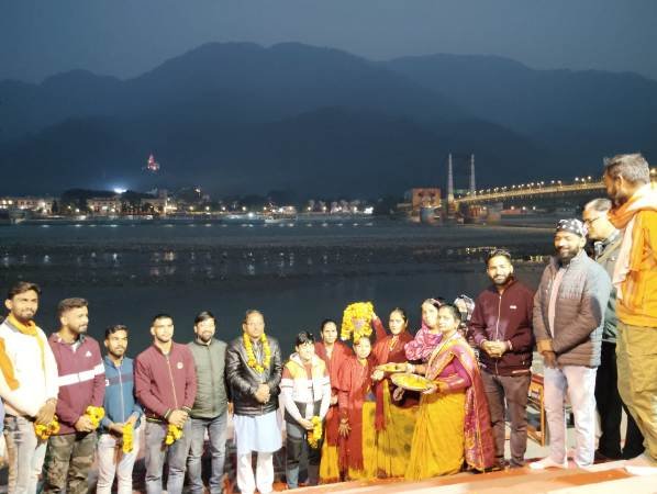 ऋषिकेश। ऋषिकेश गंगा आरती ट्रस्ट के तत्वाधान में गंग सबलाओं द्वारा की जा रही विश्व की प्रथम गंगा आरती में पूर्णानंद घाट में महिलाओं ने पूजन-अर्चना कर गंगा आरती में अयोध्या से लाए गए अक्षत कलश का स्वागत किया।अयोध्या में भगवान श्रीराम के मन्दिर में रामलला की 22 जनवरी को मूर्ति की प्राण प्रतिष्ठा को पूर्णानंद घाट में महाउत्सव के रूप में मनाने के तहत अक्षत कलश (पीले चावल) हरिद्वार से पूर्णानंद घाट पहुंचने पर विश्व हिन्दू परिषद्, बजरंग दल व श्रद्धालुओं ने भव्य स्वागत किय इसके बाद अक्षत कलश को सिर पर रखकर गंगा घाट पर परिक्रमा निकाली गई। अक्षत कलश का गंगा घाट पुष्प वर्षा कर भगवान श्रीराम की जयघोष के साथ स्वागत किया गया। गंगा आरती में ऋषिकेश गंगा आरती ट्रस्ट के अध्यक्ष हरिओम शर्मा ज्ञानी जी, ट्रस्ट के कोषाध्यक्ष विशाल भट्ट डॉ विकास सूर्यवंशी प्रांतीय संगठन सचिव, श्याम प्रकाश शर्मा ज्योति शर्मा, विभाग संयोजक बजरंग दल नरेश उनियाल, जिलाध्यक्ष विहिप राजेंद्र पांडे,, जिला सह संयोजक जयंत सैनी, प्रखंड सह मंत्री शुभम नौटियाल, श्यामपुर प्रखंड संयोजक गौरव, श्यामपुर प्रखंड सत्संग प्रमुख श्री हरिओम, हरिपुर खंड सह संयोजक सूरज, अक्षय त्यागी, सूरज मिंज,बहन सुश्री पूनम सोनी, अर्पित, सूरज, जोत सिंह, गुसाईं, सोमिया चौधरी उपस्थित रहे