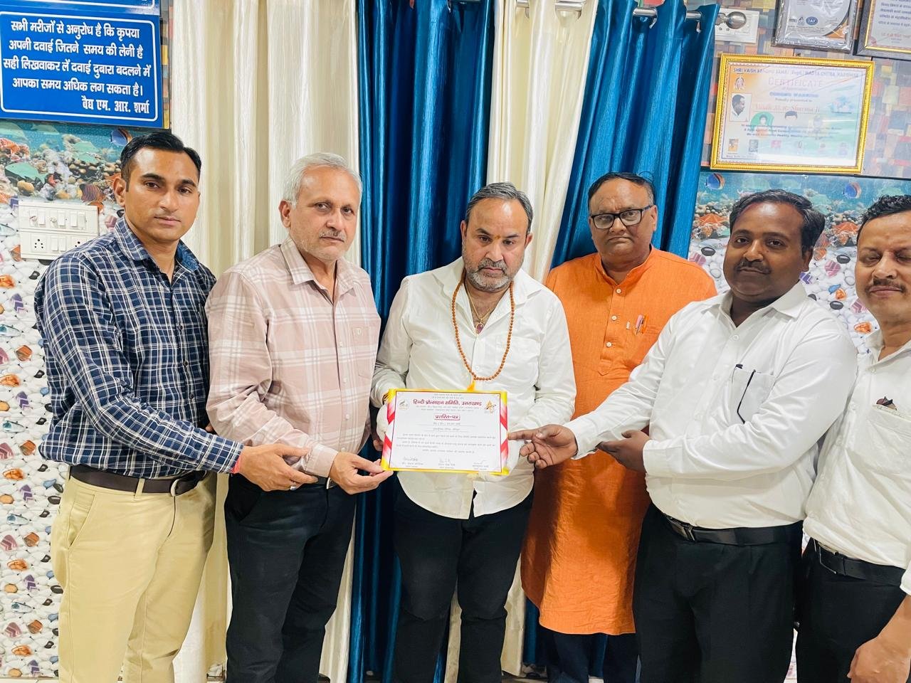 हरिद्वार।  चरक सहितां प्राचीन भारतीय चिकित्सा का मूल आधार है।जिसमें सभी असाध्य रोगों का निदान समाहित है। आज भारत ही नही समूची दुनिया प्राचीन भारतीय आयुर्वेदिक पद्वति व हिंदी भाषा के प्रति आकर्षित हो उसे तेजी से अपना रही है। यह विचार नगर के जानेमाने नाडी वैद्य एम.आर.शर्मा ने हिंदी प्रोत्साहन समिति द्वारा गुरुकपा औषधालय मे सम्मानित किये जाने के अवसर पर व्यक्त किये।उन्होंने कहा की वह यह सम्मान हरिद्वार नगर की जनता को समर्पित करते है।उनका जीवन जनसेवा को समर्पित है।उन्होंने कहा की उनके पास आने वाले रोगियों मे बडी संख्या ग्रामीण परिवेश से आने वाले रोगियों की होती है।जिनसे वह हिंदी भाषा के माध्यम से सरल व साधारण भाषा मे संवाद कर उनके रोग का उपचार करते है। उन्होंने लोगों से अपने दैनिक जीवन मे अधिक से अधिक हिन्दी भाषा को अपनाने का अनुरोध किया।