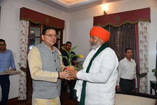 भाकियू राष्ट्रीय प्रवक्ता राकेश टिकैत ने की सीएम धामी से शिष्टाचार भेंट