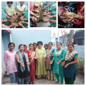सरस्वती वंदना के पश्चात हरे रंग की साडी दोनो हाथो मे मेंहदी तथा पूर्ण श्रंगार के साथ महिलाओ ने एकल नृत्य पेश किया ।सबने तालियां बजा कर नृत्यांगना ओ का उत्साह वर्धन किया तत्पश्चात कार्यक्रम की रूपरेखा के अनुसार सभी महिलाए तीज के गीत गाते हुए झूला झूलने का आनंद ली । जैसे ही तीज का गाना शुरू हुआ महिलाए समूह मे नृत्य करने लगी देखकर ऐसा लगा प्रत्येक महिला के रुप मे मां पर्वती नृत्य कर रही है ।