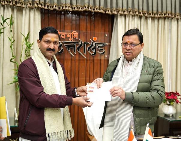 देहरादून। मुख्यमंत्री श्री पुष्कर सिंह धामी से शुक्रवार को मुख्यमंत्री कैम्प कार्यालय में श्री बद्रीनाथ केदारनाथ मंदिर समिति के अध्यक्ष श्री अजेंद्र अजय ने भेंट की। उन्होंने जोशीमठ में भूधंसाव क्षेत्र में प्रभावितों की सहायता के लिए मुख्यमंत्री राहत कोष के लिए 05 लाख रुपए का चेक मुख्यमंत्री को सौंपा। यह धनराशि श्री बद्रीनाथ केदारनाथ मंदिर समिति के अध्यक्ष एवं उपाध्यक्ष श्री किशोर पंवार के एक माह के वेतन तथा अधिकारियों व कर्मचारियों के एक दिन के वेतन से दी गई। इस अवसर पर श्री बद्रीनाथ केदारनाथ मंदिर समिति मुख्य कार्यकारी अधिकारी श्री योगेन्द्र सिंह भी उपस्थित थे।