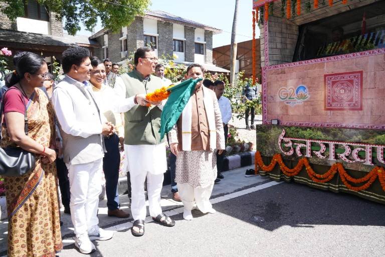 देहरादून। मुख्यमंत्री पुष्कर सिंह धामी ने बुधवार को मुख्यमंत्री आवास से गणतंत्र दिवस परेड-2023 में प्रथम स्थान पर रही उत्तराखण्ड राज्य की झांकी ‘मानसखण्ड’ को प्रदेश के जनपदों/ब्लॉक मुख्यालयों तथा मुख्य स्थानों पर प्रदर्शन हेतु फ्लैग ऑफ किया। गणतंत्र दिवस परेड-2023 में विभिन्न राज्यों व भारत सरकार के मंत्रालयों की 27 झांकियों में उत्तराखण्ड की मानसखण्ड झांकी को प्रथम स्थान प्राप्त हुआ। कर्त्तव्य पथ पर पहली परेड में उत्तराखण्ड को प्रथम स्थान मिलना एक बड़ी उपलब्धि है। उत्तराखण्ड गठन से अब तक पहली बार राज्य की झांकी को प्रथम स्थान प्राप्त हुआ है। मानसखण्ड झांकी में जागेश्वर मंदिर, कार्बेट नेशनल पार्क, ऐपण आर्ट, योग तथा वनों का समावेश किया गया था। इस उपलब्धि से उत्तराखण्ड की धार्मिक, सांस्कृतिक धरोहर, कला एवं संस्कृति का प्रचार-प्रसार पूरे विश्व में हुआ। 05 अप्रैल, 2023 से 18 मई 2023 तक प्रदेश के ब्लॉक मुख्यालयों एवं मुख्य शहरों में झांकी का प्रदर्शन जनमानस के सम्मुख किया जाएगा। मानसखण्ड झांकी के संबंध में 02 मिनट की वीडियो भी तैयार की गई है। इस शॉर्ट फिल्म का एल.ई.डी. के माध्यम से जन सामान्य हेतु प्रसारण किया जाएगा। समस्त जनपद मुख्यालयों पर जिलाधिकारी के सहयोग से स्थानीय विधायक की उपस्थिति में झांकी से सम्बन्धित कार्यक्रमों का आयोजन किया जाएगा।