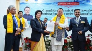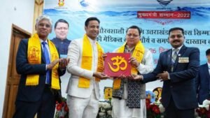 देहरादून। मुख्यमंत्री श्री पुष्कर सिंह धामी ने सोमवार को मुख्यमंत्री आवास स्थित मुख्य सेवक सदन में सिक्स सिग्मा हैल्थ केयर-हाई एल्टीट्यूड मेडिकल सर्विसेज के चिकित्सकों को सम्मानित किया। मुख्यमंत्री ने कहा कि सिक्स सिग्मा की टीम ने चारधाम यात्रा के दौरान यात्रियों को विशेष रूप से केदारनाथ में जिस प्रकार मेडिकल सेवाएं प्रदान की गई, यह सराहनीय प्रयास हैं। उन्होंने कहा कि सिक्स सिग्मा हेल्थकेयर की स्वास्थ्य टीम द्वारा सरकार को जो सहयोग प्रदान किया जा रहा है, उसके लिए उनकी पूरी टीम साधुवाद के पात्र है।