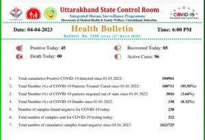 मंगलवार को कुल 45 नए मरीज मिलने के बाद राज्य में एक्टिव मरीजों का आंकड़ा सौ के करीब पहुंचते हुए 96 हो गई है। स्वास्थ्य विभाग के अधिकारियों के अनुसार राज्य में एक ही दिन में 45 कोरोना संक्रमित कई महीनों बाद मिले हैं। हालांकि, राहत की बात रही कि मंगलवार को राज्य में किसी भी कोरोना संक्रमित की मौत नहीं हुई है।