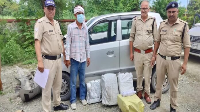 विकासनगर। उत्तराखंड पंचायत चुनाव में 28 जुलाई को दूसरे चरण के लिए मतदान होना है। मतदान से पहले पुलिस ने प्रदेशभर में चेकिंग अभियान चला रखा है। इसी क्रम में देहरादून पुलिस को सहसपुर क्षेत्र में बड़ी सफलता मिली है। देहरादून पुलिस से मिली जानकारी के अनुसार सहसपुर थाना क्षेत्र में शनिवार 26 जुलाई को चेकिंग की जा रही थी, तभी पुलिस की नजर एक कार पर पड़ी। पुलिस को मामला कुछ संदिग्ध लगा। इसीलिए पुलिस ने ड्राइवर को कार रोकने का इशारा किया, लेकिन ड्राइवर ने कार रोकने के बजाए भगानी शुरू कर दी। इसके बाद पुलिस ने कार का पीछा किया। हालांकि कुछ ही दूरी पर जाकर कार सामने से आ रहे लोडर वाहन से टकरा किया। पुलिस ने बताया कि इस दौरान कार का ड्राइवर तो भाग गया, लेकिन कार में बैठे एक अन्य व्यक्ति को पुलिस ने मौके पर ही दबोच लिया। इसके बाद पुलिस ने कार की तलाशी ली तो सीट से नीचे केबिन बनाकर दारू छुपाई गई थी। पुलिस ने कार से 6 पेटी अंग्रेजी शराब की बरामद की। पुलिस ने बताया कि उनकी गिरफ्त में आए आरोपी को नाम टिकू शर्मा निवासी यमुनानगर हरियाणा है। जिसे पुलिस ने आबकारी अधिनियम के तहत गिरफ्तार किया गया है। कार को सीज कर दिया गया है, जबकि दूसरे आरोपी की तलाश की जा रही है। पुलिस के अनुसार आरोपी से बरामद की गई शराब हरियाणा की है। पुलिस अभी पता लगाने में जुटी हुई है कि आखिर ये शराब किसको सप्लाई की जानी थी। कही इस शराब का इस्तेमाल पंचायत चुनाव में तो नहीं किया जाना था।