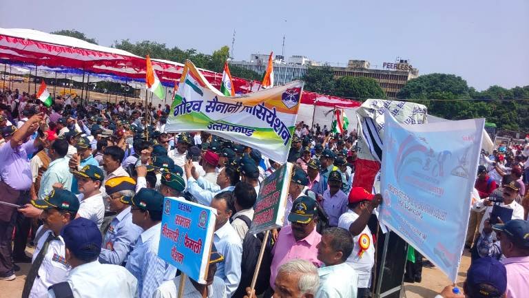 देहरादून। आज देहरादून उत्तराखंड से हजारों की संख्या में गौरव सैनानी व वीर नारियां पिछले 6 महीने से चल रहे ओ आर ओ पी आंदोलन के बाद रामलीला मैदान दिल्ली पहुंचें ओ आर ओ पी मिशन के तहत 6 अगस्त आज एक एतिहासिक दिन था जिसमें देश भर के हजारों पूर्व सैनिक एकजुट होकर रामलीला मैदान दिल्ली पहुंचें। गौरव सैनानी एसोसिएशन उत्तराखंड के अध्यक्ष महावीर राणा का आज मंच पर भव्य स्वागत किया गया और अध्यक्ष महावीर राणा ने कहा आज पिछले 6 महीने से ओ आर ओ पी की विसंगतियों को लेकर पूर्व सैनिक वीर नारियां बार बार सरकार से गुहार लगा रही है पर सरकार लगातार मन की बात सुना रही पर पूर्व सैनिकों की बात नहीं सुन रही रामलीला मैदान दिल्ली के प्रांगण से केन्द्र सरकार के कानों में आवाज जा रही पर पर सरकार अनदेखा करके गहरी नींद लें रही है और साथ में पूरे नेशनल टी वी चैनल भी सरकार के इशारे पर नींद लें रहें हैं अगर जल्दी सरकार इन विसंगतियों पर विचार नहीं करती है तो पूर्व सैनिक देशव्यापी आंदोलन करेंगे।रामलीला मैदान में आज 150 से अधिक छोटे बड़े संगठनों ने एक बड़े मेमोरेंडम में हस्ताक्षर किए जो सरकार को भेजा जायेगा।आज के कार्यक्रम को सफल बनाने में उत्तराखंड के हजारों गौरव सैनानियों का अमूल्य सहयोग रहा। गौरव सैनानी एसोसिएशन उत्तराखंड सभी का तह दिल से हार्दिक धन्यवाद एवं आभार व्यक्त करता है।