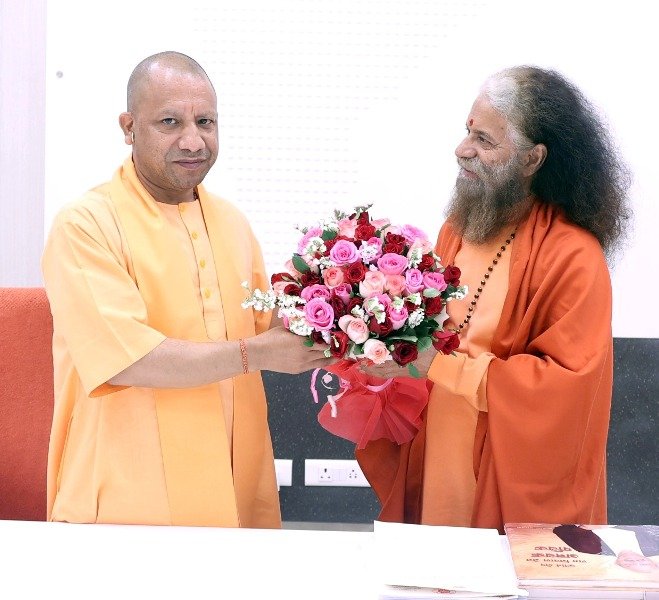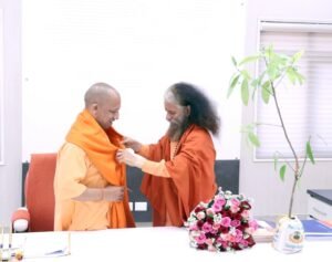 स्वामी जी ने माननीय मुख्यमंत्री योगी आदित्यनाथ जी को रूद्राक्ष का दिव्य पौधा भेंट कर उनका अभिनन्दन किया।