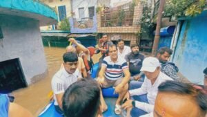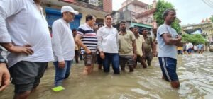 ऋषिकेश । क्षेत्रीय विधायक व मंत्री डॉ प्रेमचंद अग्रवाल ने चंद्रेश्वर नगर में घुसे एक मंजिला पानी की स्थिति जानी। इस दौरान डॉ अग्रवाल ने पैदल चलकर लोगों की समस्याएं जाने के बाद राफ्ट की सहायता से दो मंजिला भवन में फंसे लोगों से जलस्तर कम होने तक शिफ्ट होने का आग्रह किया। डॉ अग्रवाल ने उप जिलाधिकारी को यहां फंसे लोगों को भोजन, पानी तथा दैनिक उपभोग की वस्तुएं उपलब्ध कराने के निर्देश दिए। उन्होंने कहा कि इस कड़ी में कोई भी व्यक्ति रह न जाए, इसका भी ध्यान रखा जाए। इस मौके पर डॉ अग्रवाल ने उप जिलाधिकारी को रूषा फॉर्म, गुमानीवाला, पांडे प्लॉट, शिवाजी नगर, बायपास मार्ग में जल भराव की स्थिति जानने को कहा। उन्होंने कहा कि बाढ़ की स्थिति का सही आकलन कर प्रभावितों को उचित मुआवजा दिया जाए। इस मौके पर नगर आयुक्त राहुल गोयल, उप जिलाधिकारी सौरभ असवाल, मण्डल अध्यक्ष सुमित पंवार, पार्षद शिव कुमार गौतम, शम्भू पासवान, देवदत्त शर्मा, किशन मंडल, चंदू यादव, सुधीर यादव, श्याम बिहारी बोस सहित जल पुलिस के जवान हरीश गुसाईं, विनोद सेमवाल, अनिल पाल आदि उपस्थित रहे।