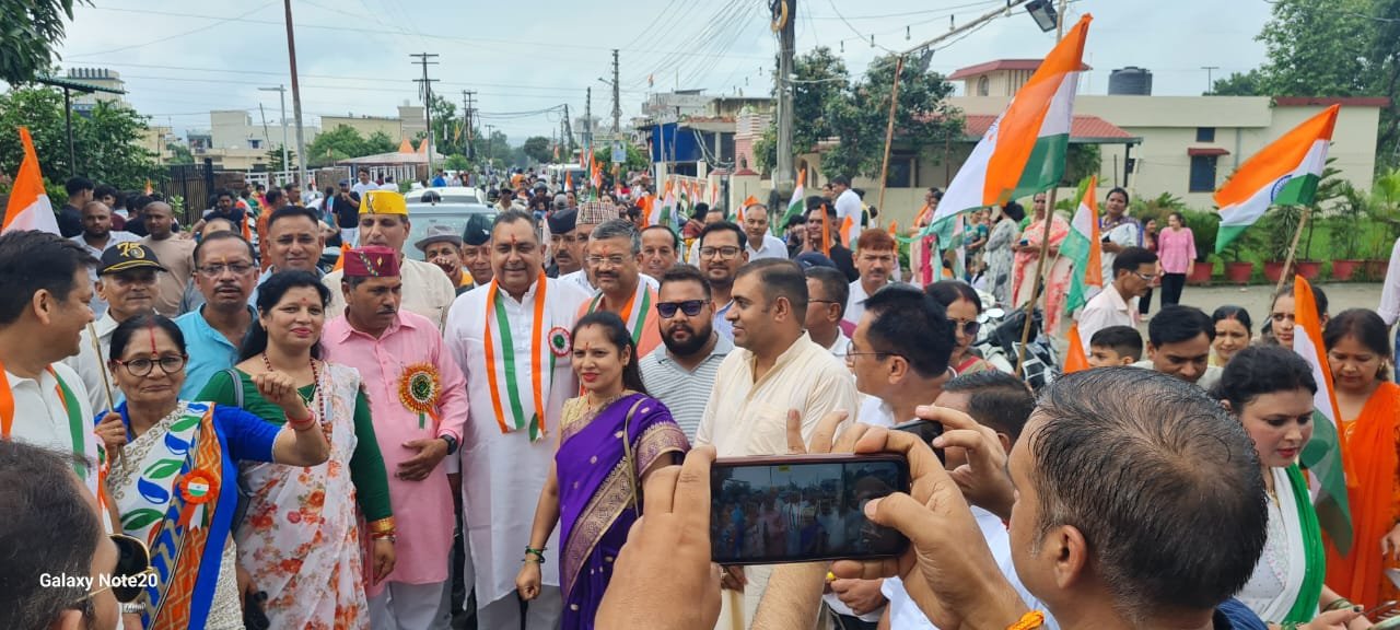 विकासनगर। स्वतंत्रता दिवस के उपलक्ष में सहसपुर विधायक सहदेव सिंह पुंडीर ने हर घर तिरंगा महाभियान के अंतर्गत शिवालिक नगर मंडल में आयोजित “तिरंगा यात्रा” में भाग लिया।  विधायक ने स्वतंत्रता संग्राम के शहीदों को श्रद्धांजलि अर्पित की और उनके बलिदान को सराहा। उनका कहना था कि इन वीर जवानों के योगदान को कभी भुलाया नहीं जा सकता और उनके साहस व संघर्ष से हमें प्रेरणा मिलती है।  इस अवसर पर जिलाध्यक्ष मीता सिंह, मंडल अध्यक्ष दर्शन सिंह रावत, पूर्व मंडल अध्यक्ष जीवन रावत, युवा मोर्चा अध्यक्ष शिवानिश रावत, निवर्तमान पार्षद बीना रतूड़ी, सुमन भास्खंडी, बिजेंद्र उनियाल, प्रमोद रतूड़ी, सत्येंद्र सिंह, विनय रावत एवं अन्य भाजपा कार्यकर्ता उपस्थित रहे।