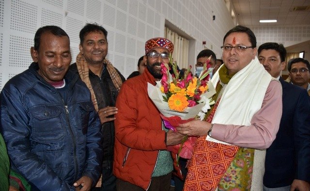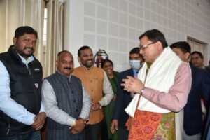 देहरादून। मुख्यमंत्री श्री पुष्कर सिंह धामी से नववर्ष के अवसर पर मुख्यमंत्री आवास स्थित मुख्य सेवक सदन में प्रदेश के विभिन्न क्षेत्रों से आये लोगों ने भेंट कर नव वर्ष की शुभकामनाएं दी। मुख्यमंत्री ने सभी को नव वर्ष की शुभकामनाएं देते हुए मंगलमय जीवन की कामना की।