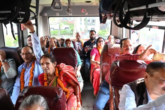 सीएम ने किया 32 श्रद्धालुओं के एक दल को हरी झंडी दिखाकर गंगोत्री धाम के लिए रवाना
