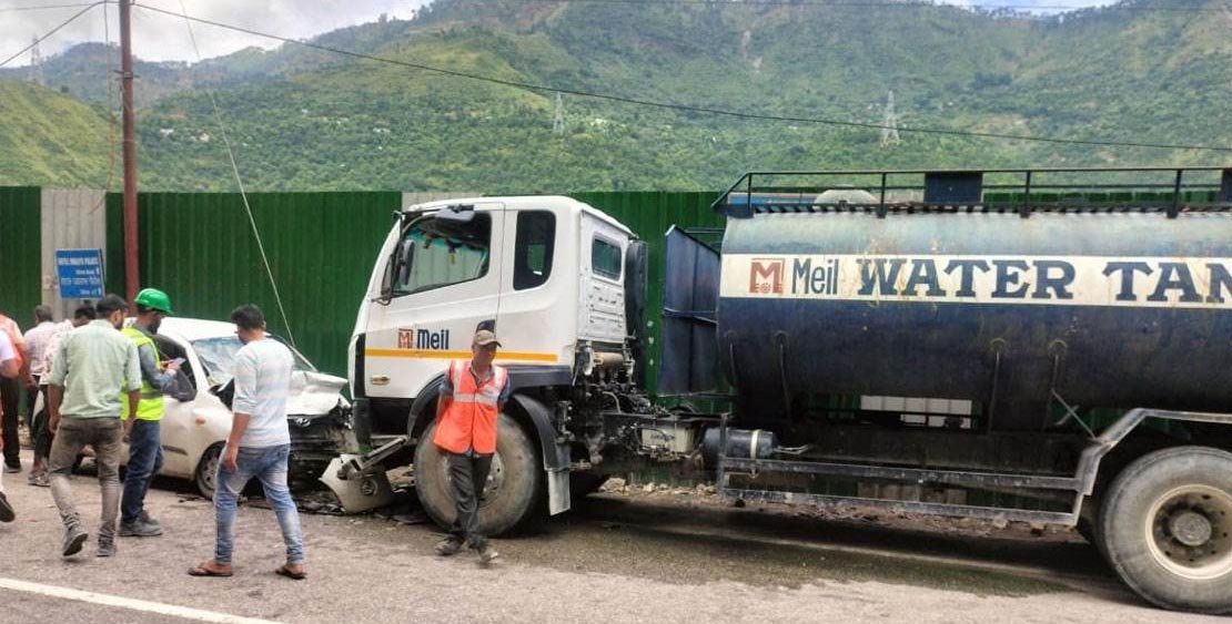 सड़क किनारे खड़े टैंकर से टकराई अनियंत्रित कार, पांच यात्री घायल