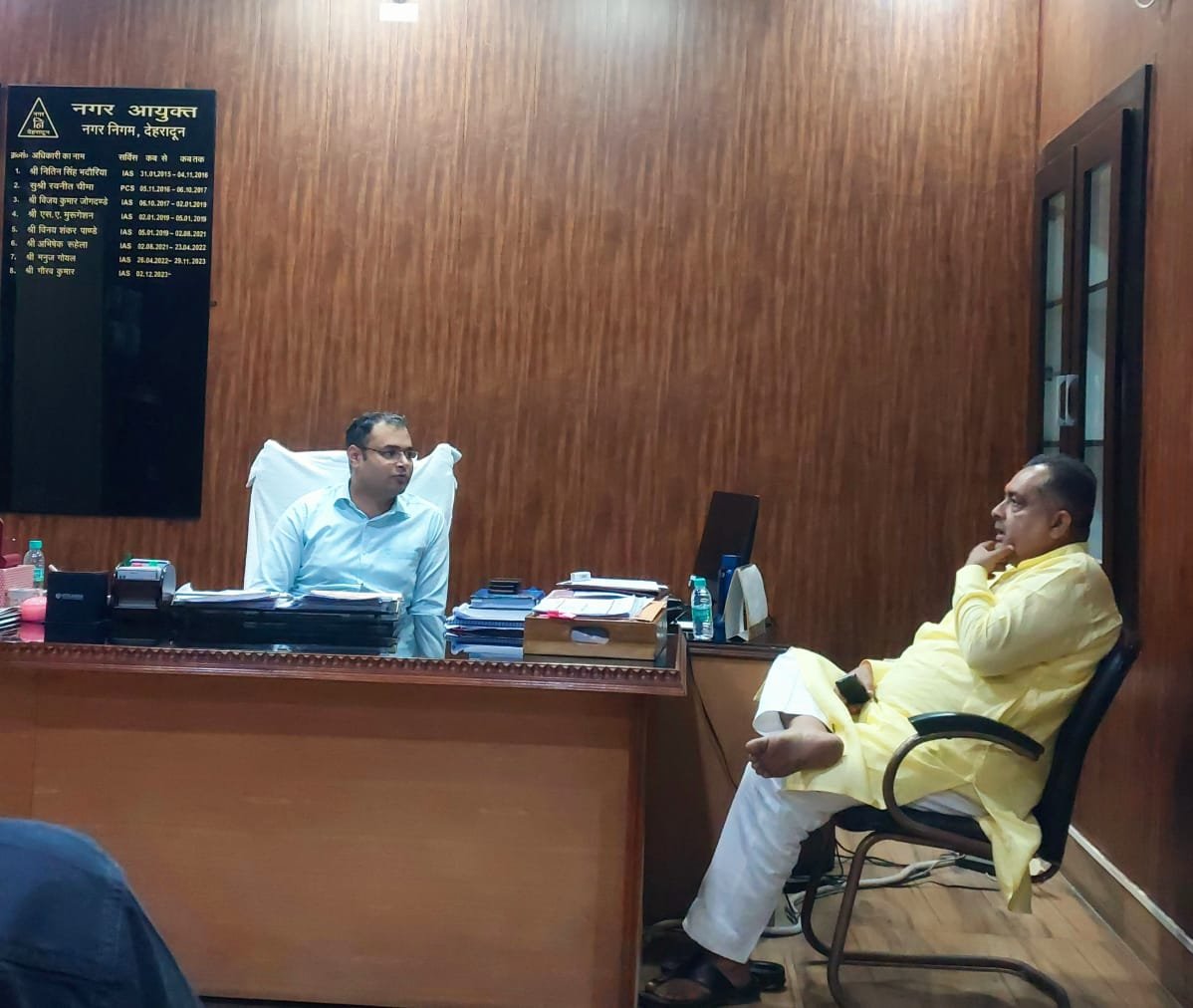 देहरादून। सहसपुर विधानसभा के विधायक सहदेव सिंह पुंडीर के नेतृत्व में शिवालिक नगर मंडल के वरिष्ठ जनों, पदाधिकारी और कार्यकर्ताओं ने देहरादून के जिलाधिकारी सविंन बंसल और देहरादून नगर निगम आयुक्त गौरव कुमार से क्षेत्र की स्ट्रीट लाइट, नाली सफाई ,कूड़ा उठान और सड़क से संबंधित समस्याओं के निराकरण के लिए मुलाकात कर उन्हें समस्याओं से अवगत कराया। जिलाधिकारी और नगर आयुक्त ने अधिकारियों को निराकरण के लिए निर्देशित किया।